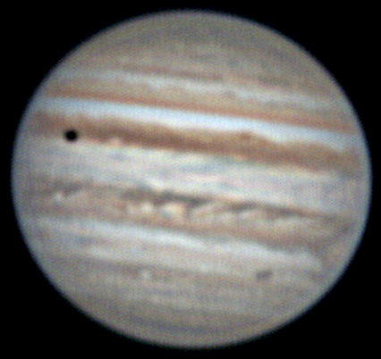 Io and its shadow in transit Notes: One exposure every ~30 minutes. 6 in total. GRS and Red Spot Jr. also visible. Frames are slightly over sharpened. Telescope: Celestron CPC 800 (8") Barlow: Orion 2x Shorty Plus Camera: Celestron NexImage Each Exposure: Stack of 530-700 x 1/5 s @ 5 fps Date: July 21st-22nd June 2008 Time: 10:40 pm to 1:00 am |
