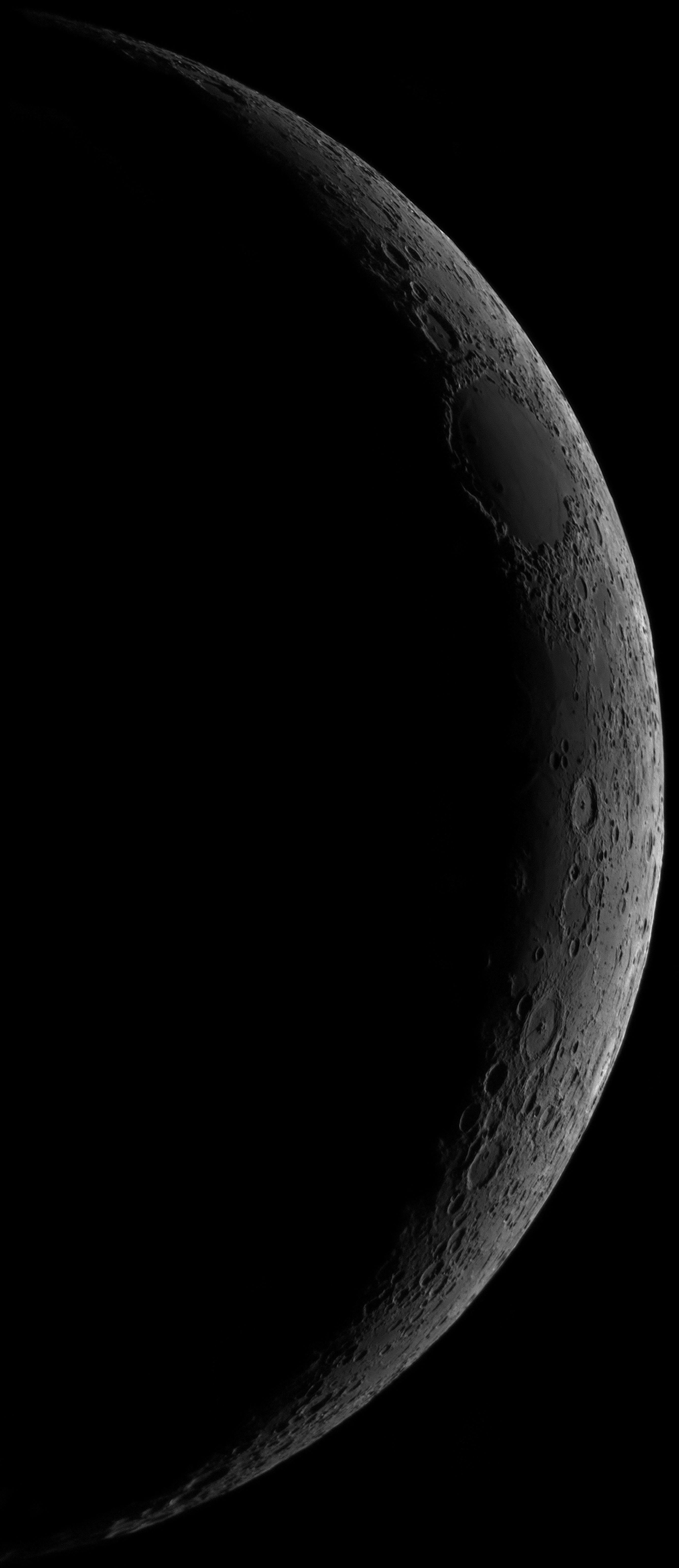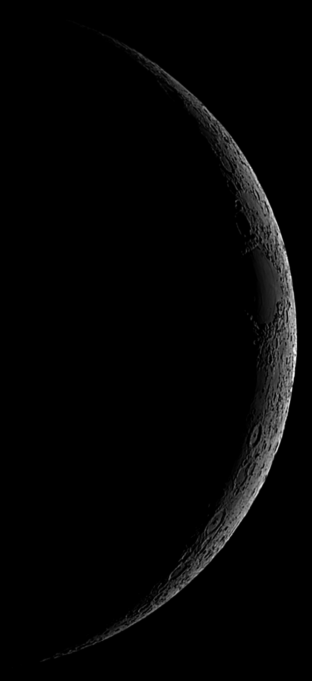 Moon Age: 02.43 days old Each Exposure: Best of 1200 frames @ 30 fps, aligned and stacked Final Result: Stitch of 7 exposures with iMerge Date: 10th January 2008 Time: 6:50 - 6:57 pm Telescope: Celestron NexStar 4 SE (4") Camera: Celestron NexImage